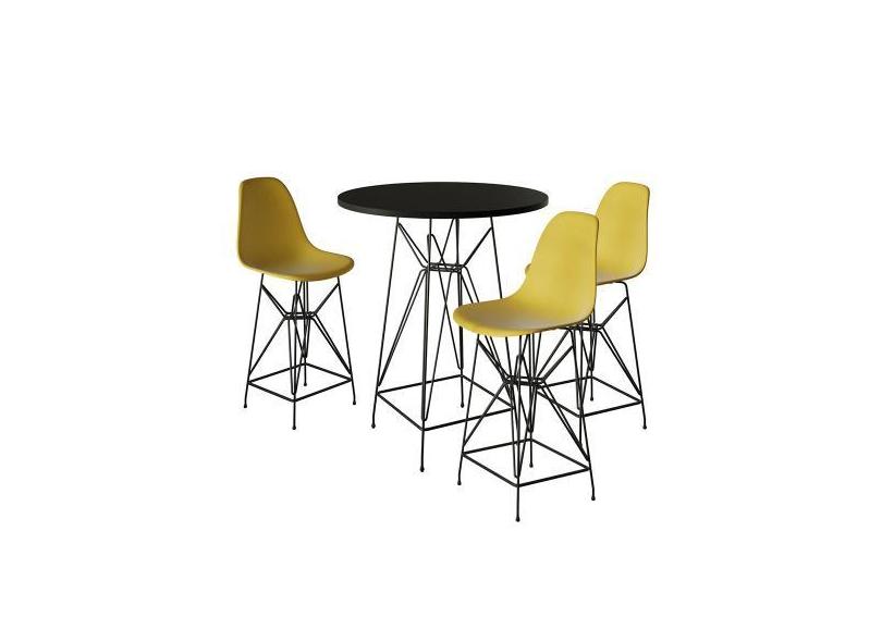 Jogo Mesa Bistrô Eames Preta 60cm 3 Banquetas Amarela Base Ferro Preto