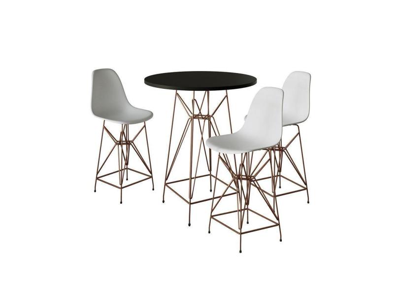 O menor preço encontrado no Brasil para Jogo Mesa Bistrô Eames Preta 60Cm 3 Banquetas Branca Base Ferro Cobre - Cor: Preto atualmente é R$ 1.279,80.