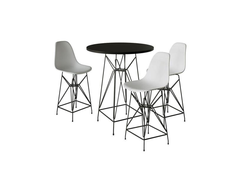 O menor preço encontrado no Brasil para Jogo Mesa Bistrô Eames Preta 60Cm 3 Banquetas Branca Base Ferro Preto - Cor: Preto atualmente é R$ 1.279,80.