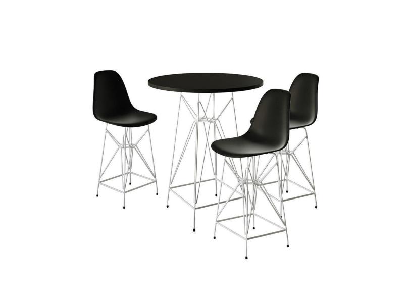 Jogo Mesa Bistrô Eames Preta 60Cm 3 Banquetas Preta Base Ferro Branco - Cor: Preto