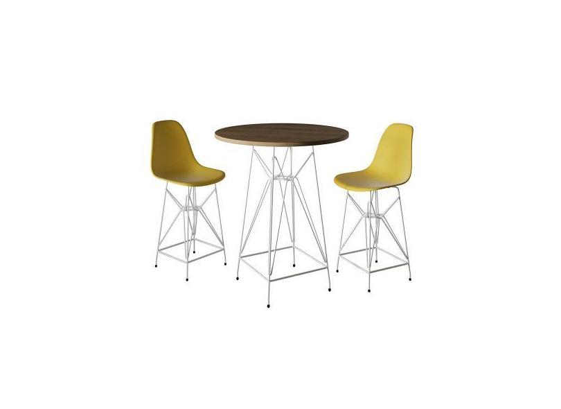Jogo Mesa Bistrô Eames Tampo Amêndoa 60cm 2 Banquetas Amarela Base Fer