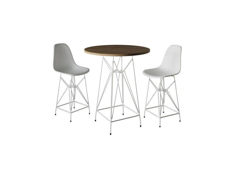 Jogo Mesa Bistrô Eames Tampo Amêndoa 60Cm 2 Banquetas Branca Base Ferro Branco - Cor: Amendoa