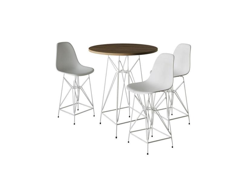Jogo Mesa Bistrô Eames Tampo Amêndoa 60Cm 3 Banquetas Branca Base Ferro Branco - Cor: Amendoa