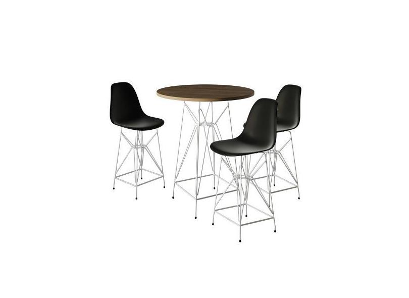 Jogo Mesa Bistrô Eames Tampo Amêndoa 60cm 3 Banquetas Preta Base Ferro