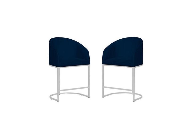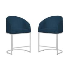 Kit 02 Banco Banqueta Poltrona Mia Base Metal Branca Suede - Fina Mob