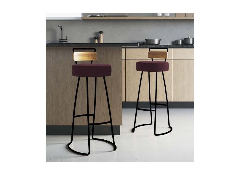 Kit 02 Banqueta Alta Alice Bar Balcão Cozinha Com Encosto Madeira Ferr