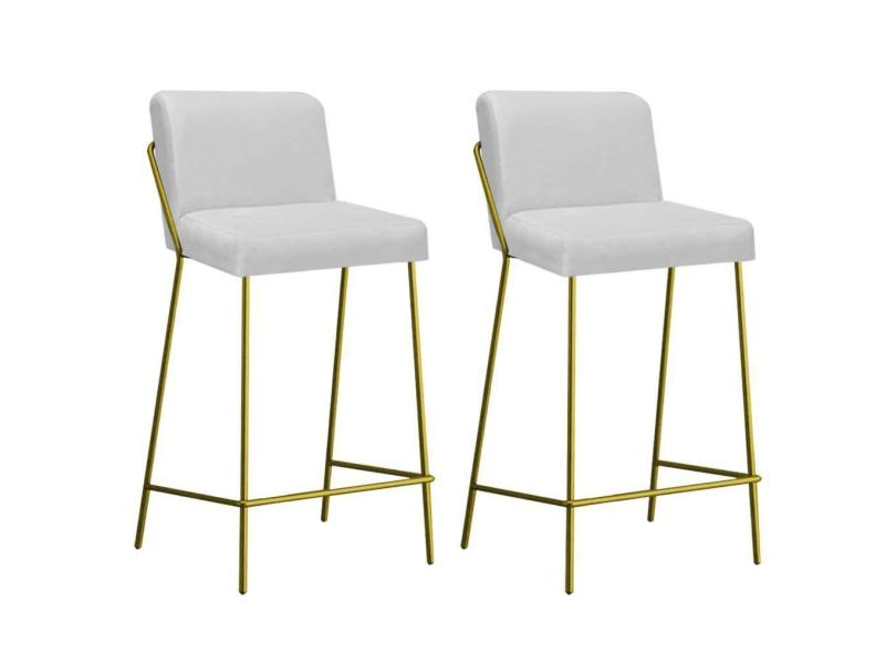 Kit 02 Banqueta Alta Com Encosto Drika Industrial Cozinha Bistrô Ferro Dourado Sintético Branco - Ahazzo Móveis
