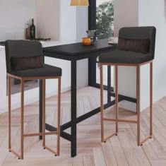 O menor preço encontrado no Brasil para Kit 02 Banqueta Alta com Encosto Lucca Industrial Cozinha Balcão Ferro Bronze Sintético Cinza e Almofada Marrom - Ahazzo Móveis atualmente é R$ 699,90.