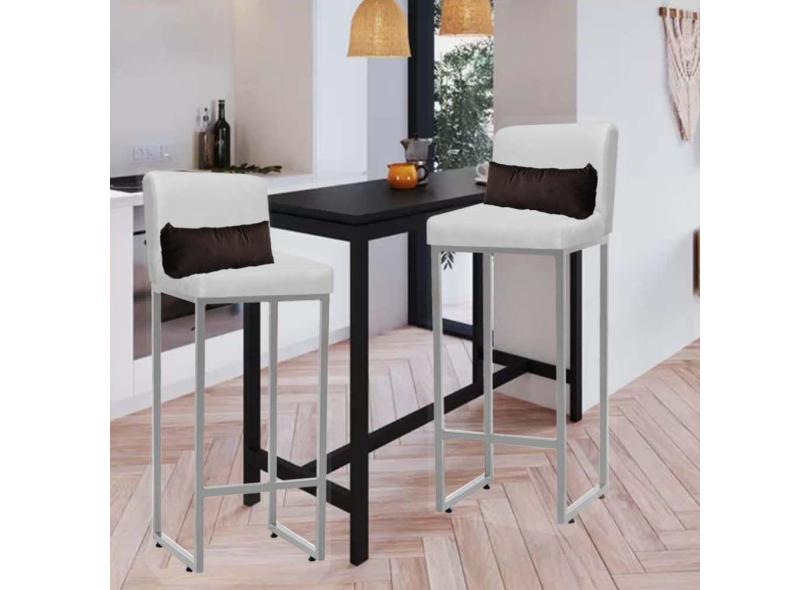 Kit 02 Banqueta Alta com Encosto Lucca Industrial Cozinha Balcão Ferro Prata Corino Branco e Almofada Marrom - Ahazzo Móveis