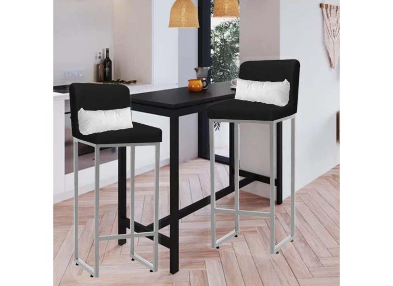 O menor preço encontrado no Brasil para Kit 02 Banqueta Alta com Encosto Lucca Industrial Cozinha Balcão Ferro Prata Sintético Preto e Almofada Branco - Ahazzo Móveis atualmente é R$ 699,90.