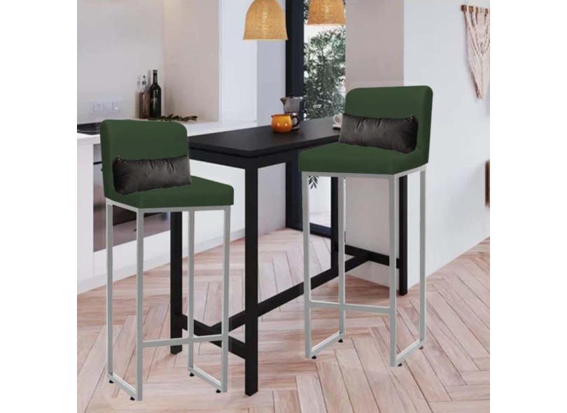 O menor preço encontrado no Brasil para Kit 02 Banqueta Alta com Encosto Lucca Industrial Cozinha Balcão Ferro Prata Suede Verde e Almofada Cinza - Ahazzo Móveis atualmente é R$ 699,90.