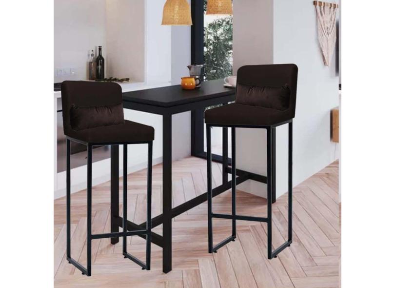 O menor preço encontrado no Brasil para Kit 02 Banqueta Alta com Encosto Lucca Industrial Cozinha Balcão Ferro Preto Sintético Marrom e Almofada Marrom - Ahazzo Móveis atualmente é R$ 699,90.