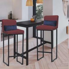 O menor preço encontrado no Brasil para Kit 02 Banqueta Alta com Encosto Lucca Industrial Cozinha Balcão Ferro Preto Suede Bordô e Almofada Azul Marinho - Ahazzo Móveis atualmente é R$ 699,90.