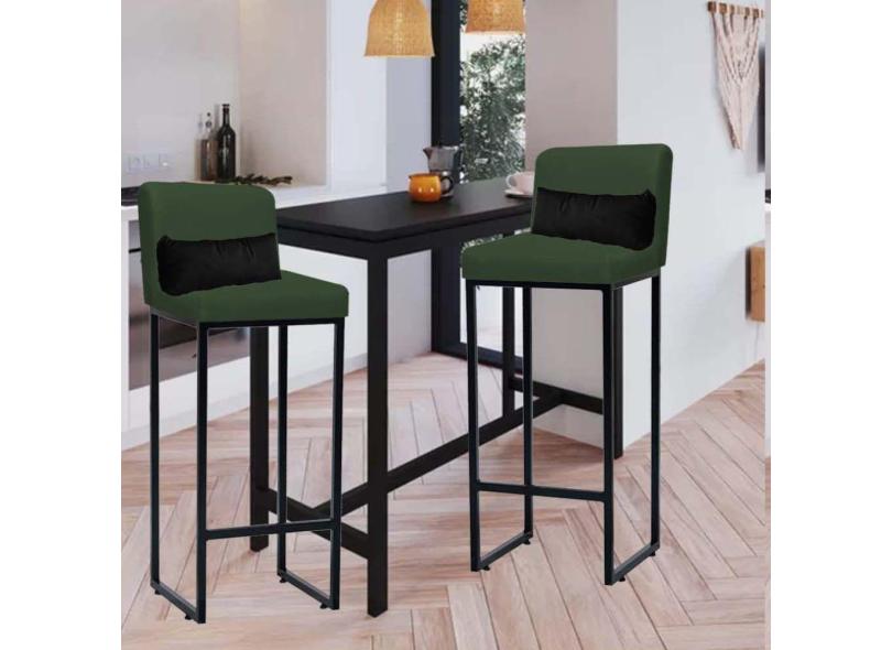 O menor preço encontrado no Brasil para Kit 02 Banqueta Alta com Encosto Lucca Industrial Cozinha Balcão Ferro Preto Suede Verde e Almofada Preto - Ahazzo Móveis atualmente é R$ 699,90.