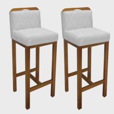 Kit 02 Banqueta Alta Com Encosto Simon Cozinha Balcão Bistrô Base Madeira Castanho Tecido Sintético Branco - Ahazzo Móveis