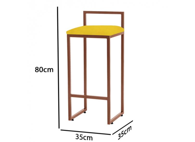Kit 02 Banqueta Alta Lina Industrial Cozinha Bar Balcão Bistrô Ferro Bronze Suede - Ahazzo Móveis