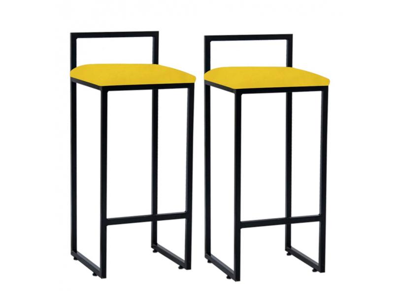 Kit 02 Banqueta Alta Lina Industrial Cozinha Bar Balcão Bistrô Ferro Suede - Ahazzo Móveis