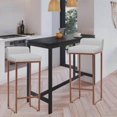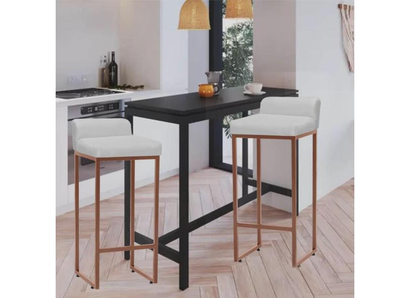 Kit 02 Banqueta Alta Mia Com Encosto Cozinha Bistrô Bar Balcão Ferro Bronze Sintético Branco - Ahazzo Móveis