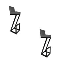 kit 02 banqueta Alta Z Base De Ferro Suede Grafite - D'Classe Decor