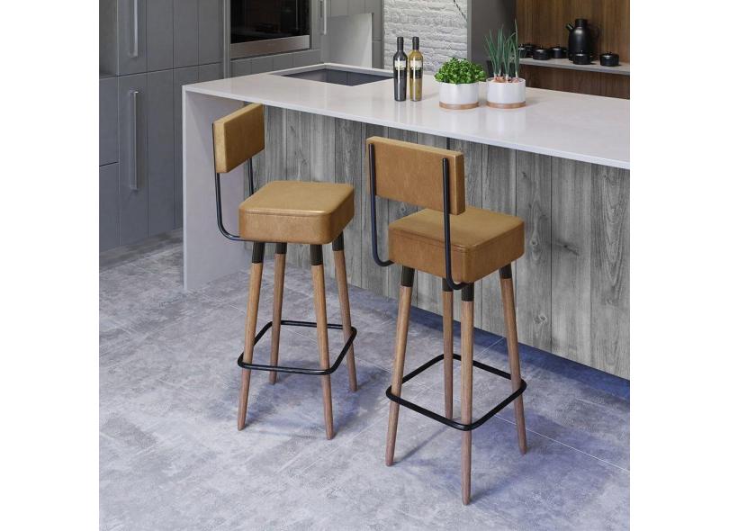 Kit 02 Banquetas Alta 70 Cm Pés De Madeira Amarula
