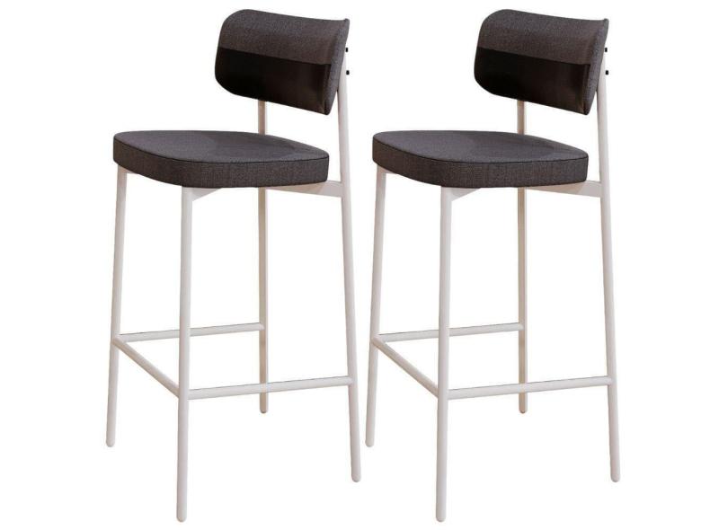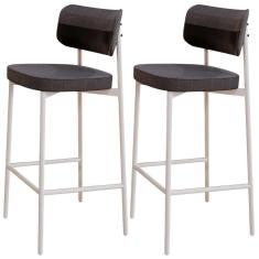 Kit 02 Banquetas Alta Bar Cozinha Sala De Jantar Aço Branco Kaira C01 Linho Preto Courino Preto - Lyam Decor