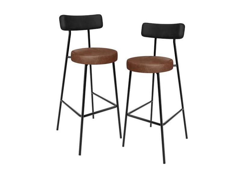 Kit 02 Banquetas Alta Bar Cozinha Sala De Jantar Milão L02 Couríssimo Preto Marrom - Lyam Decor