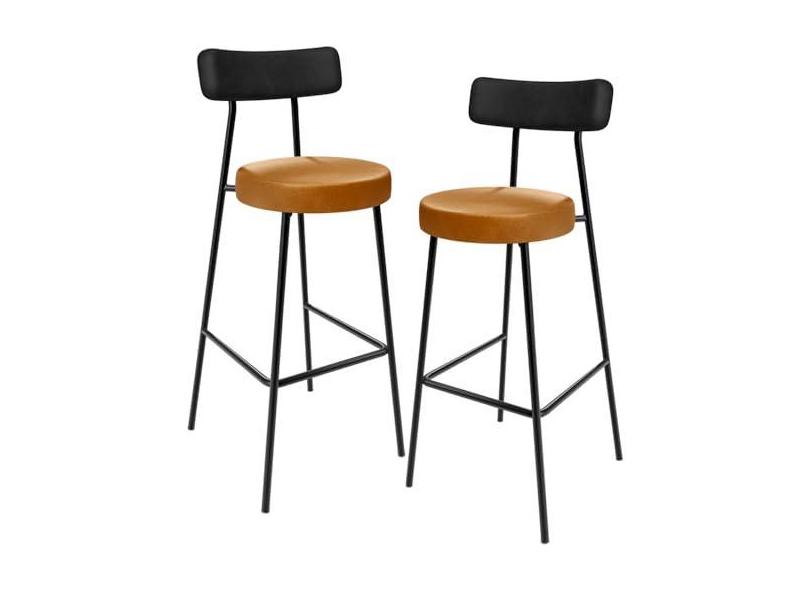Kit 02 Banquetas Alta Bar Cozinha Sala De Jantar Milão L02 Couríssimo Preto Whisky - Lyam Decor