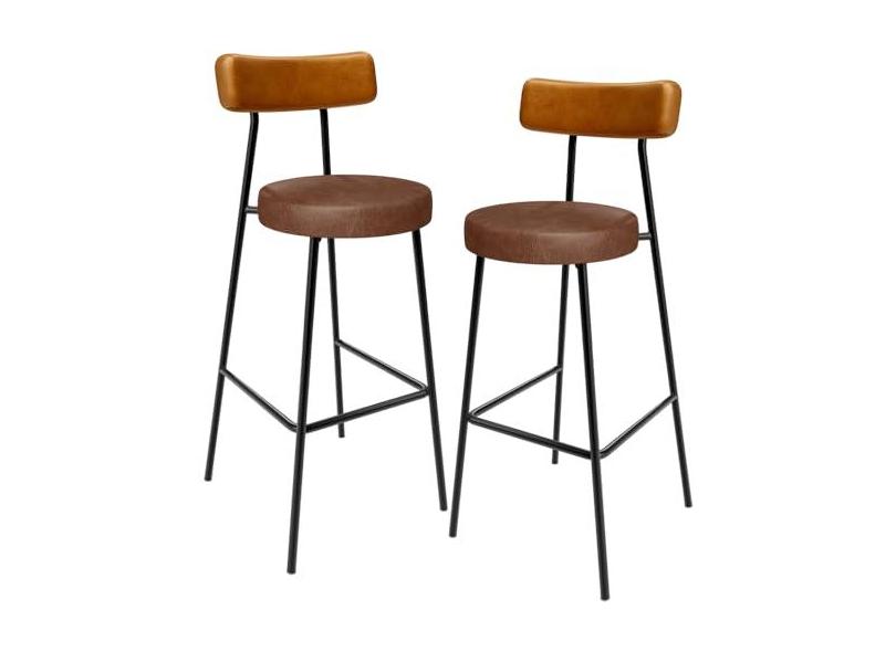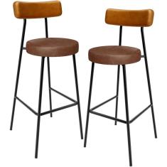 Kit 02 Banquetas Alta Bar Cozinha Sala De Jantar Milão L02 Couríssimo Whisky Marrom - Lyam Decor