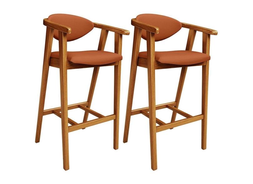 Kit 02 Banquetas Alta Cozinha Bancada Bar Sala De Jantar Fixa Cecília L02 Tecido Terracota