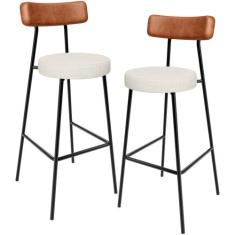 Kit 02 Banquetas Alta Cozinha Sala Jantar Milão L02 Couríssimo Marrom Linho Champagne