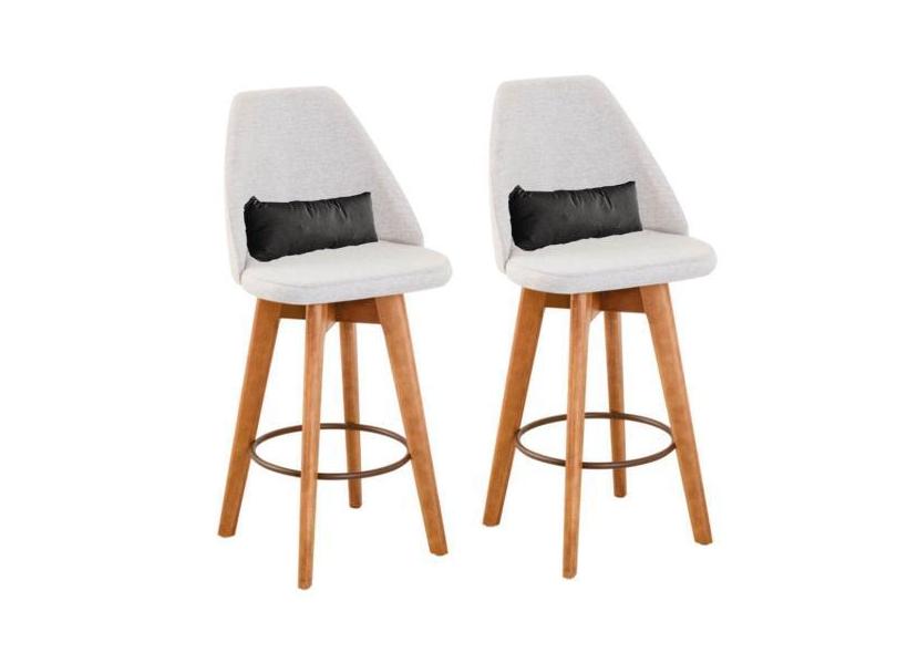 Kit 02 Banquetas Alta Maya Giratória Com Encosto Gourmet Linho Bege e