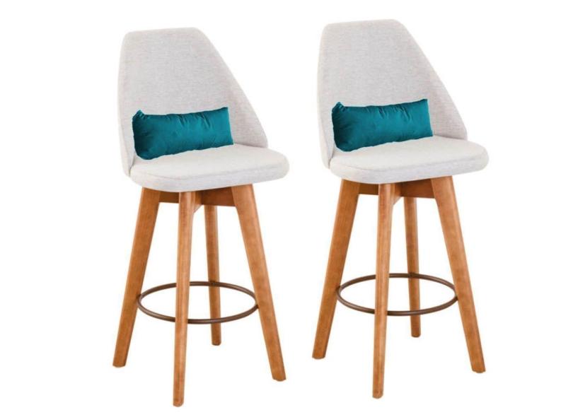 O menor preço encontrado no Brasil para Kit 02 Banquetas Alta Maya Giratória Com Encosto Linho Bege Claro e Almofada Sintético Azul Turquesa - Aurora Line atualmente é R$ 1.799,65.