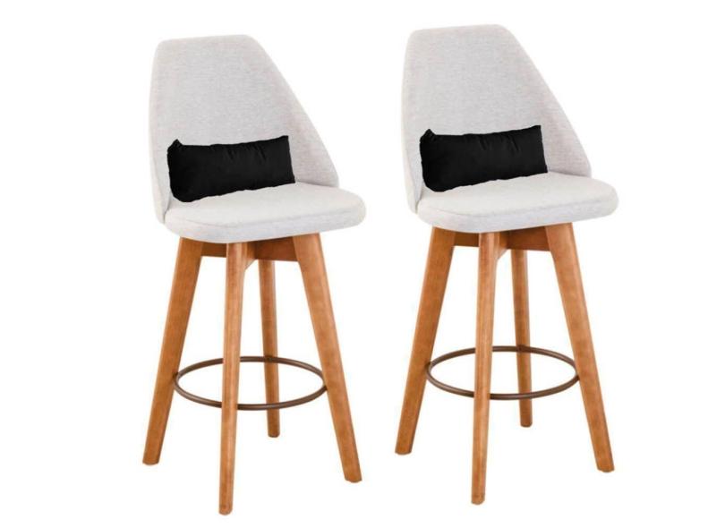 O menor preço encontrado no Brasil para Kit 02 Banquetas Alta Maya Giratória Com Encosto Linho Bege Claro e Almofada Sintético Preto - Aurora Line atualmente é R$ 1.799,65.