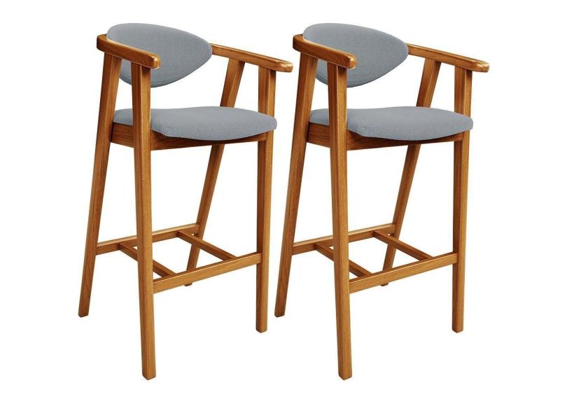 Kit 02 Banquetas Alta Para Cozinha Bancada Bar Sala De Jantar Fixa Cecília L02 Bouclê Cinza