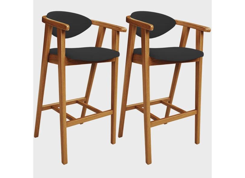 Kit 02 Banquetas Alta Para Cozinha Bancada Bar Sala de Jantar Fixa Cecília L02 Suede Preto - Lyam