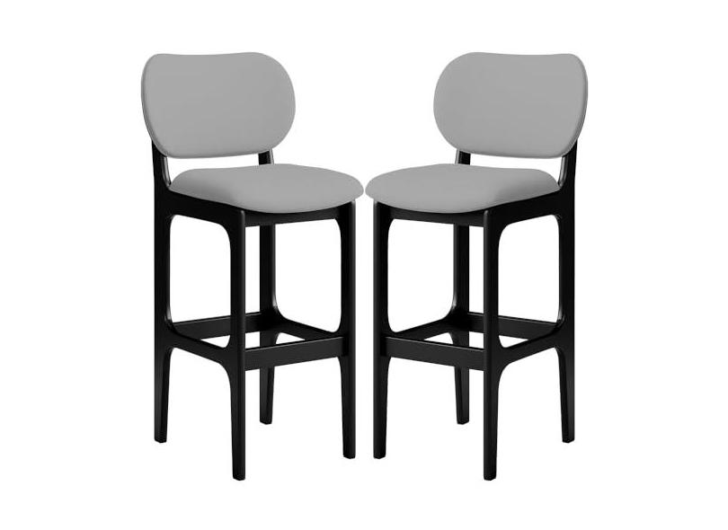 Kit 02 Banquetas Alta Para Cozinha Madeira Fixa Betta L02 Preto Facto Cinza - Lyam Decor