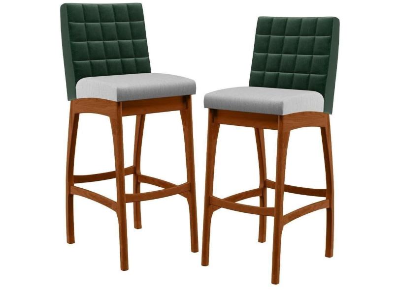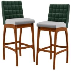 Kit 02 Banquetas Altas Cozinha B04 Verde Musgo Cinza