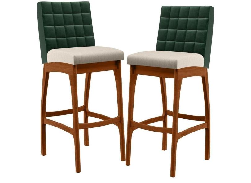 Kit 02 Banquetas Altas Cozinha B04 Verde Musgo Cru