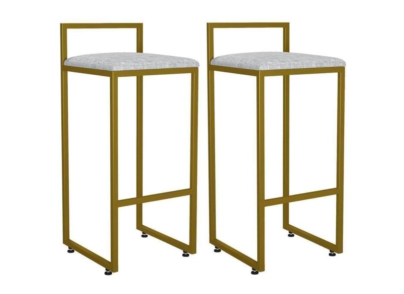 Kit 02 Banquetas Altas Hanna Dourado Linho Cinza