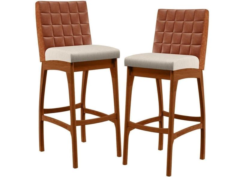 Kit 02 Banquetas Altas Mila Camel Linho Cru
