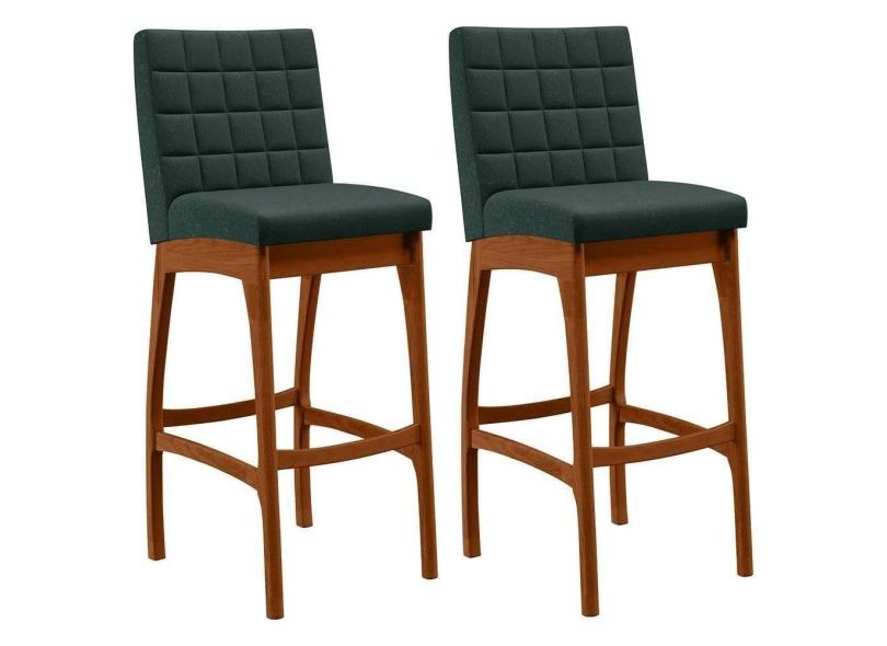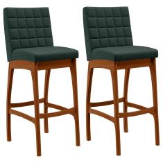 Kit 02 Banquetas Altas Mila Linho Verde Musgo