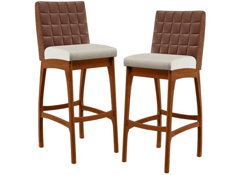 Kit 02 Banquetas Altas Mila Marrom Linho Champagne