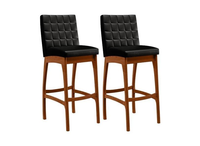 Kit 02 Banquetas Altas Para Cozinha Sala de Jantar Fixa Mila L02 Couríssimo Preto - Lyam Decor