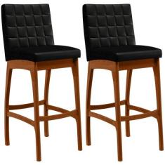 Kit 02 Banquetas Altas Para Cozinha Sala de Jantar Fixa Mila L02 Facto Cinza Metalizado - Lyam Decor
