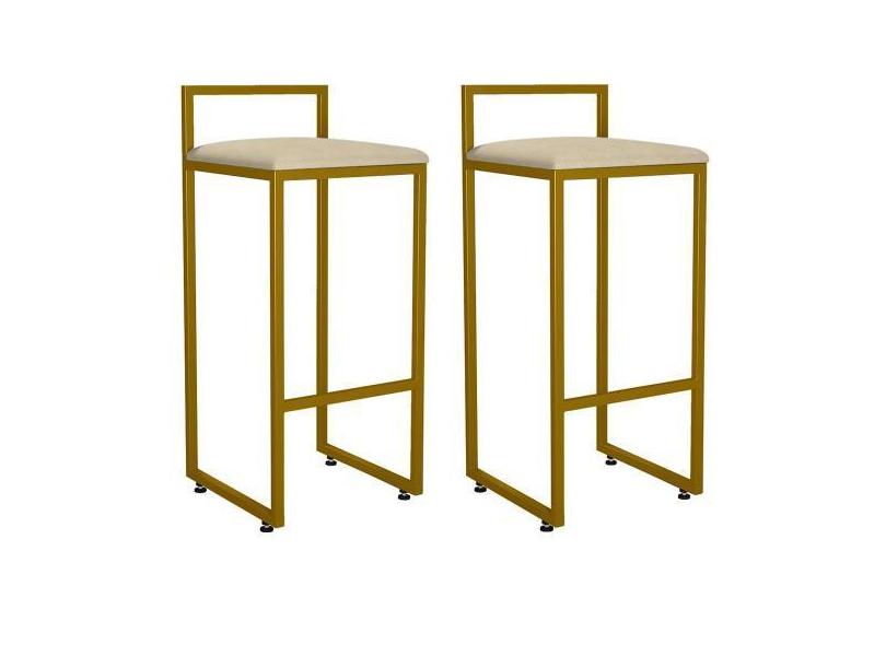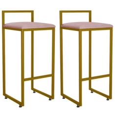 Kit 02 Banquetas Altas Para Cozinha Sala De Jantar Hanna L02 Dourado S