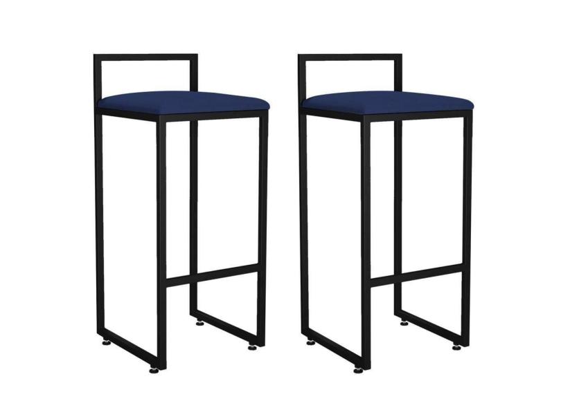 Kit 02 Banquetas Altas Para Cozinha Sala De Jantar Hanna L02 Preto Suede Azul Marinho