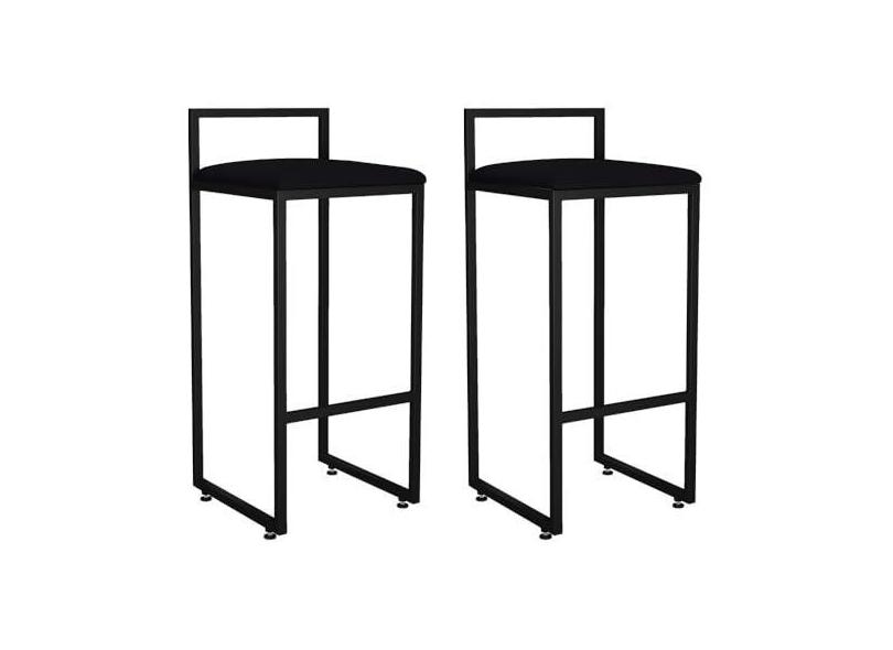 Kit 02 Banquetas Altas Para Cozinha Sala de Jantar Hanna L02 Preto Suede Preto - Lyam Decor