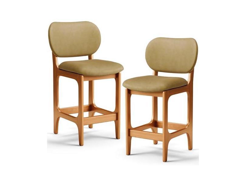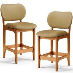 Kit 02 Banquetas Baixa Bar Cozinha E Sala De Jantar Fixa Betta L02 Imbuia Couríssimo Casco Fendi - Lyam Decor