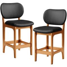 Kit 02 Banquetas Baixa Bar Cozinha E Sala De Jantar Fixa Betta L02 Imbuia Couríssimo Preto - Lyam Decor