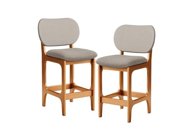 Kit 02 Banquetas Baixa Bar Cozinha E Sala De Jantar Fixa Betta L02 Imbuia Linho Bege - Lyam Decor
